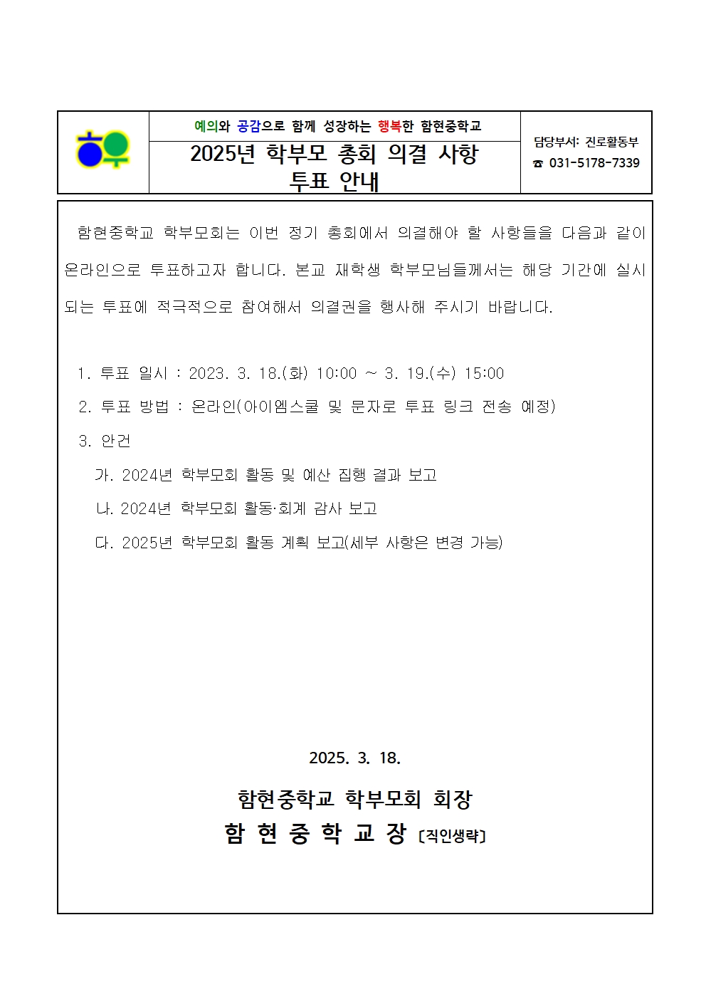 [ÀϹÝ] 2025³â Çкθð ÃÑȸ ÀÇ°á »çÇ× ÅõÇ¥ ¾È³»