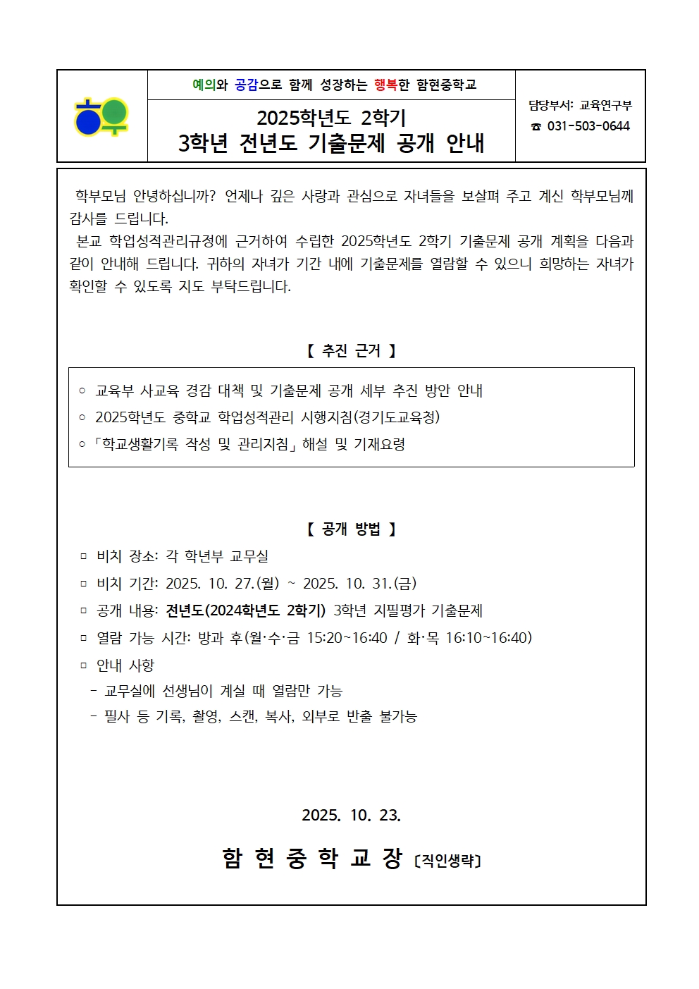 °¡Á¤Åë½Å¹®(1023)_2025Çг⵵ 2Çбâ 3Çгâ Àü³âµµ ±âÃâ¹®Á¦ °ø°³ ¾È³».hwpx (1.19MB)