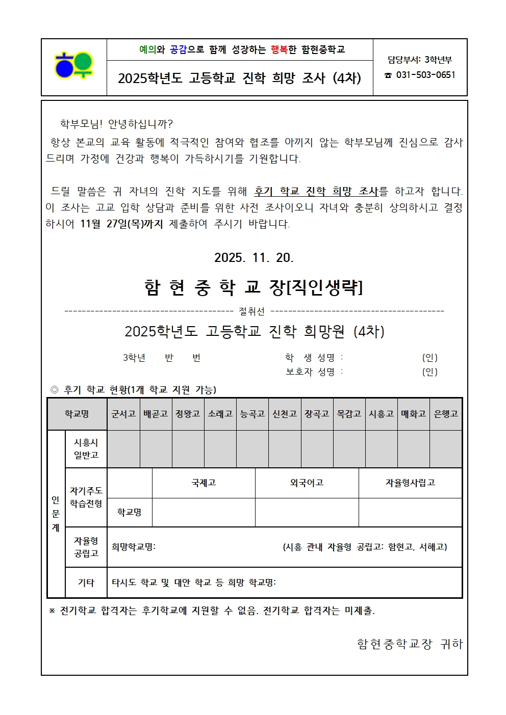 °¡Á¤Åë½Å¹®(1120)_2025Çг⵵ °íµîÇб³ ÁøÇÐ Èñ¸Á Á¶»ç(4Â÷).hwpx (66.90KB)