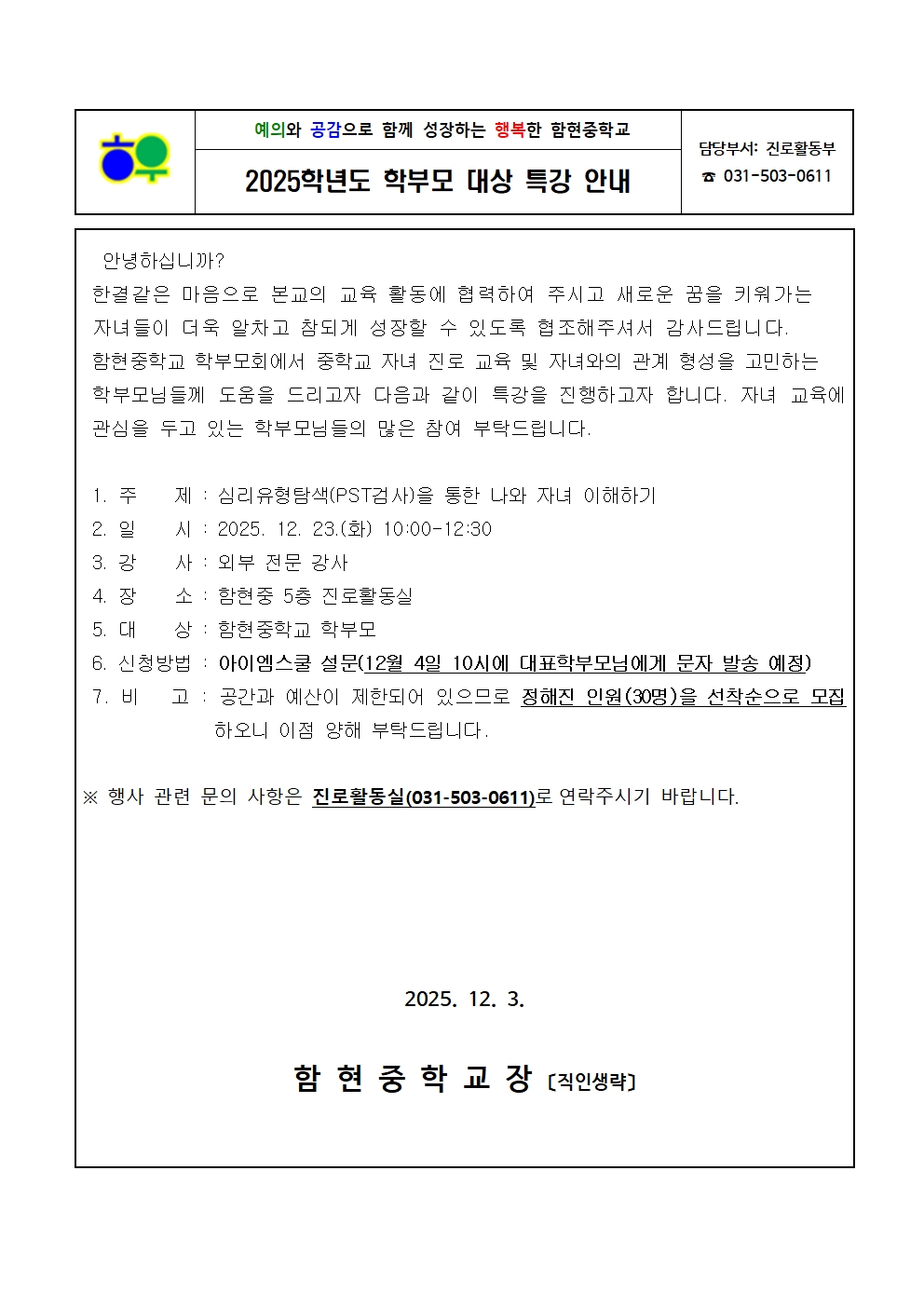 °¡Á¤Åë½Å¹®(1203)_2025Çг⵵ Çкθð ´ë»ó Ư°­ ¾È³».hwpx (54.37KB)