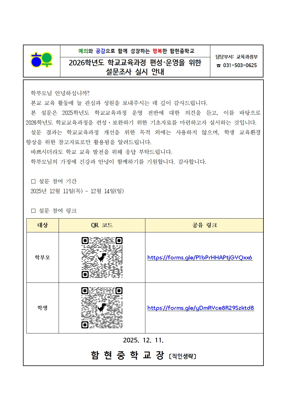 °¡Á¤Åë½Å¹®(1211)_2026Çг⵵ Çб³±³À°°úÁ¤ Æí¼º¡¤¿î¿µÀ» À§ÇÑ ¼³¹®Á¶»ç ½Ç½Ã ¾È³».hwpx (139.50KB)