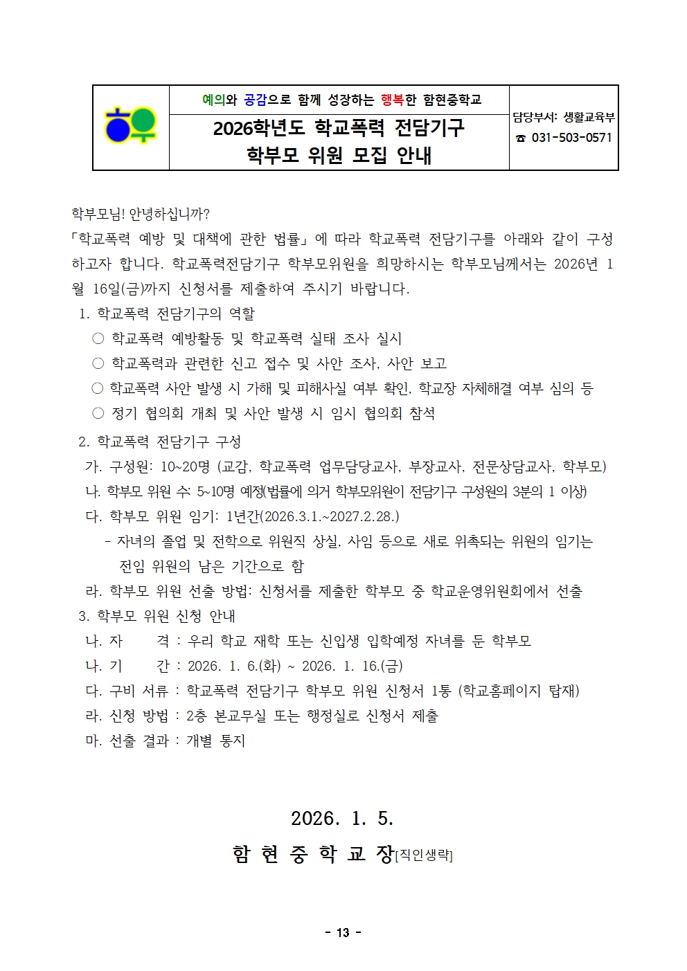 1229_°¡Á¤Åë½Å¹®(2026Çг⵵ Çб³Æø·ÂÀü´ã±â±¸ ÇкθðÀ§¿ø ½Åû).hwpx (78.88KB)