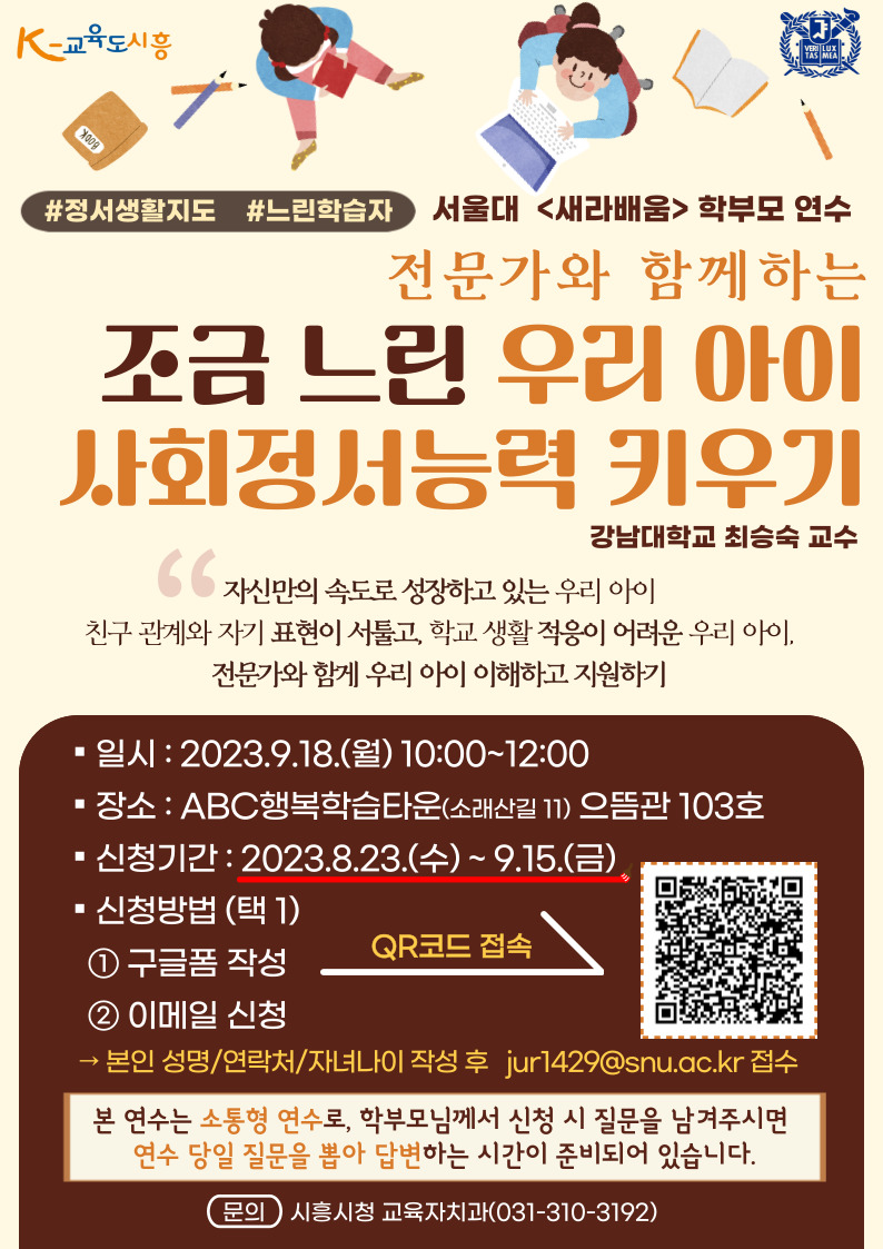 [ÀϹÝ] (½ÃÈï½Ã-¼­¿ï´ë »õ¶ó¹è¿ò) ´À¸°ÇнÀÀÚ ´ë»ó Çкθ𠿬¼ö Âü°¡ÀÚ ¸ðÁý ¹× È«º¸ÀÇ Ã·ºÎÀ̹ÌÁö 1