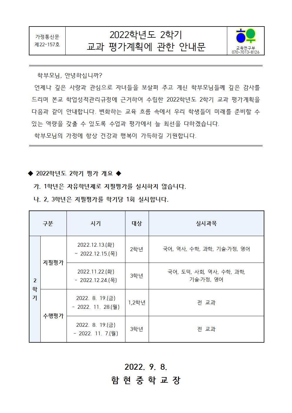 2022Çг⵵ 2ÇÐ±â Æò°¡°èȹ ¾È³» °¡Á¤Åë½Å¹®.hwp (126.00KB)