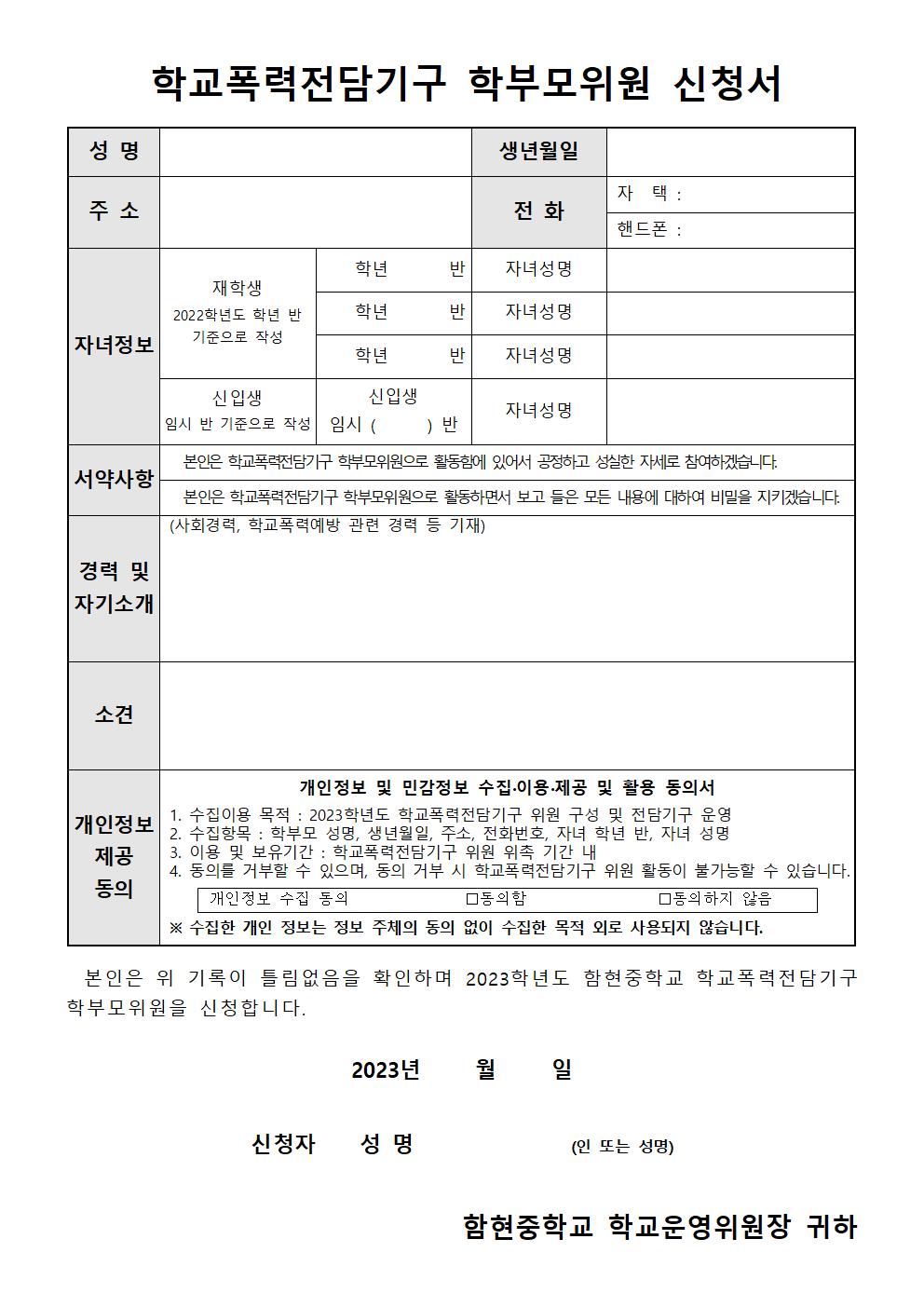 [ÀϹÝ] 2023Çг⵵ Çб³Æø·Â Àü´ã±â±¸ ÇкθðÀ§¿ø ¸ðÁý ¾È³»