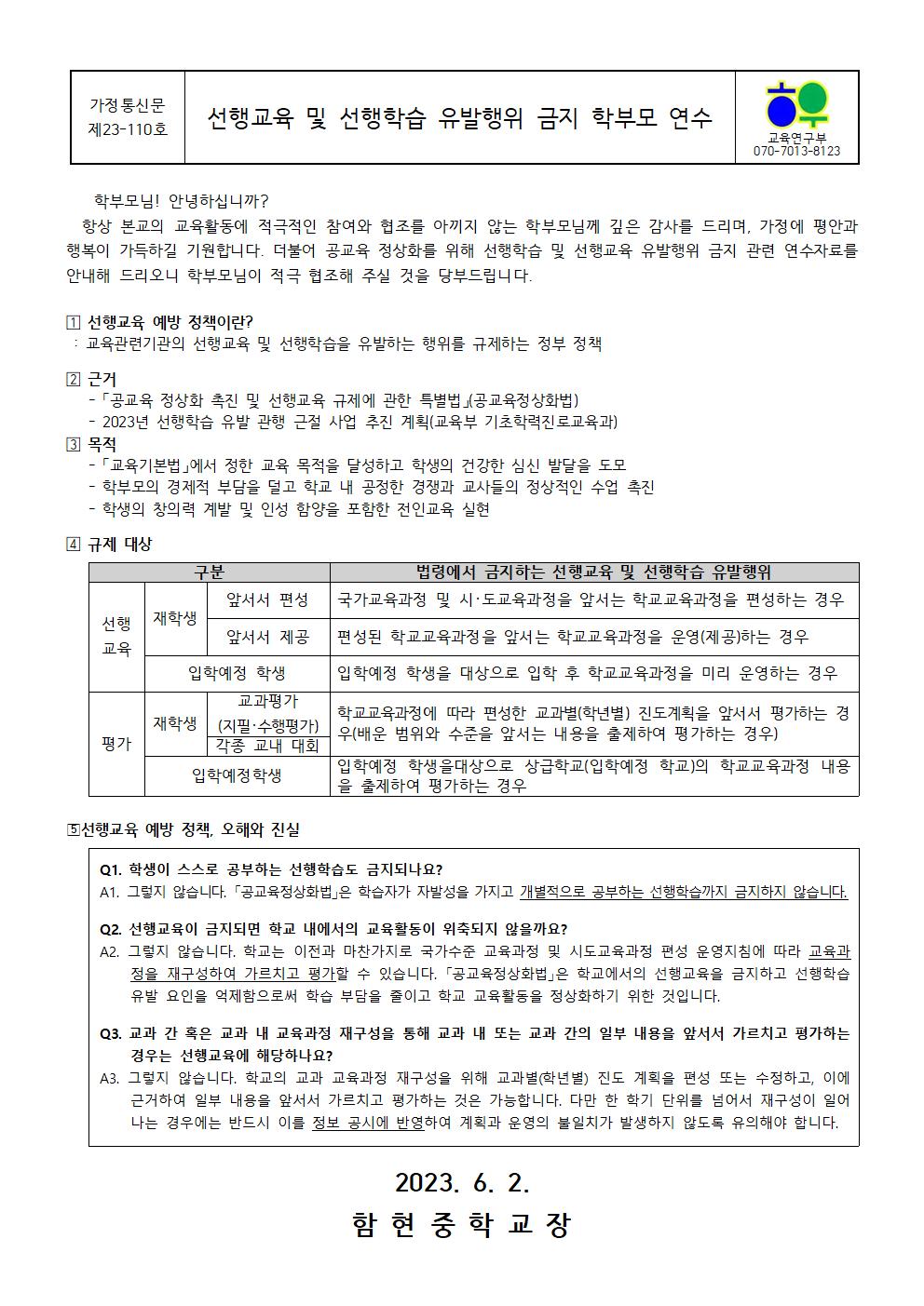 2023 1Çб⠼±Çà±³À° ¹× ¼±ÇàÇнÀ À¯¹ßÇàÀ§ ±ÝÁö Çкθ𠿬¼ö °¡Á¤Åë½Å¹®.hwp (207.00KB)