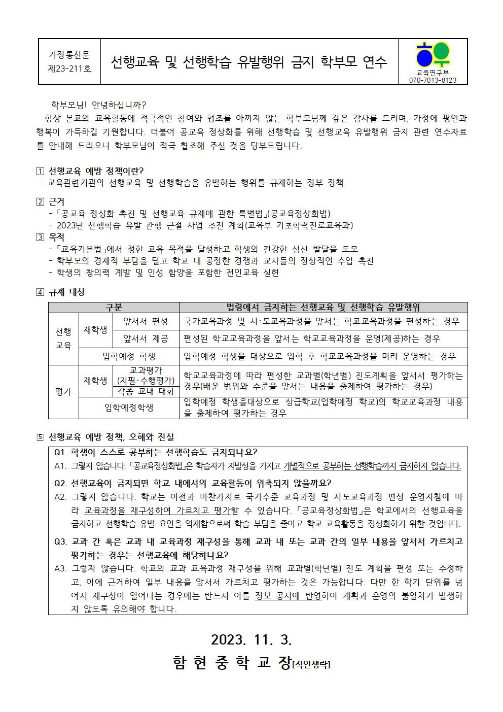 2023 2Çб⠼±Çà±³À° ¹× ¼±ÇàÇнÀ À¯¹ßÇàÀ§ ±ÝÁö Çкθ𠿬¼ö °¡Á¤Åë½Å¹®.hwp (215.00KB)