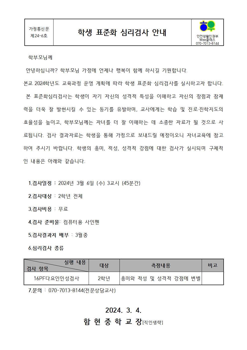 6.2024 Çлý Ç¥ÁØÈ­½É¸®°Ë»ç ¾È³» °¡Á¤Åë½Å¹®.hwp (63.00KB)