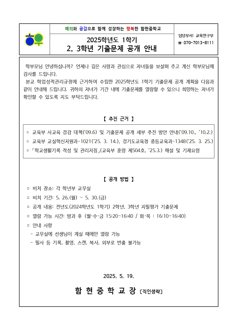 °¡Á¤Åë½Å¹®(0519)_2025Çг⵵ 1Çбâ 2, 3Çг⠱âÃâ¹®Á¦ °ø°³ ¾È³»).hwpx (1.19MB)