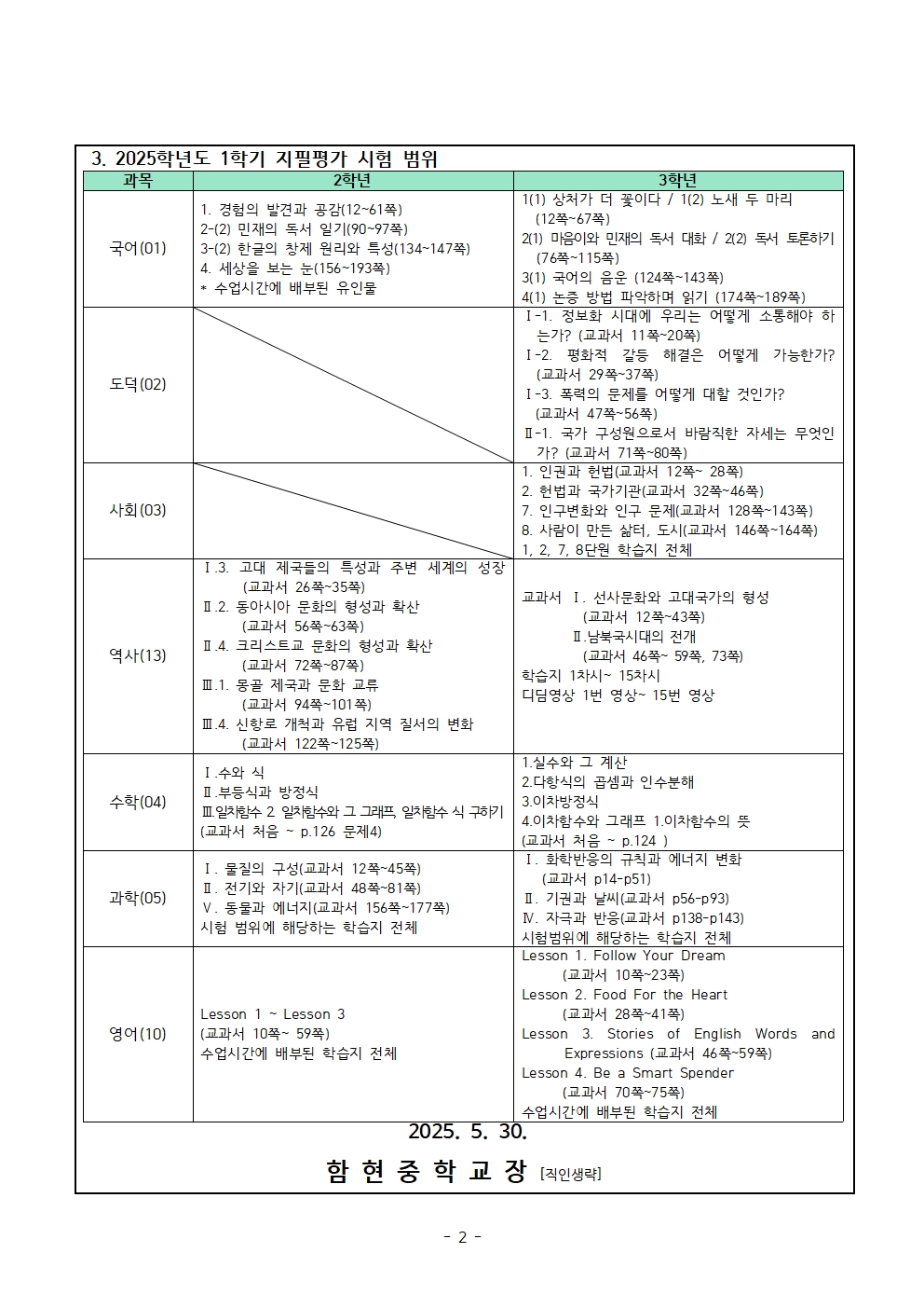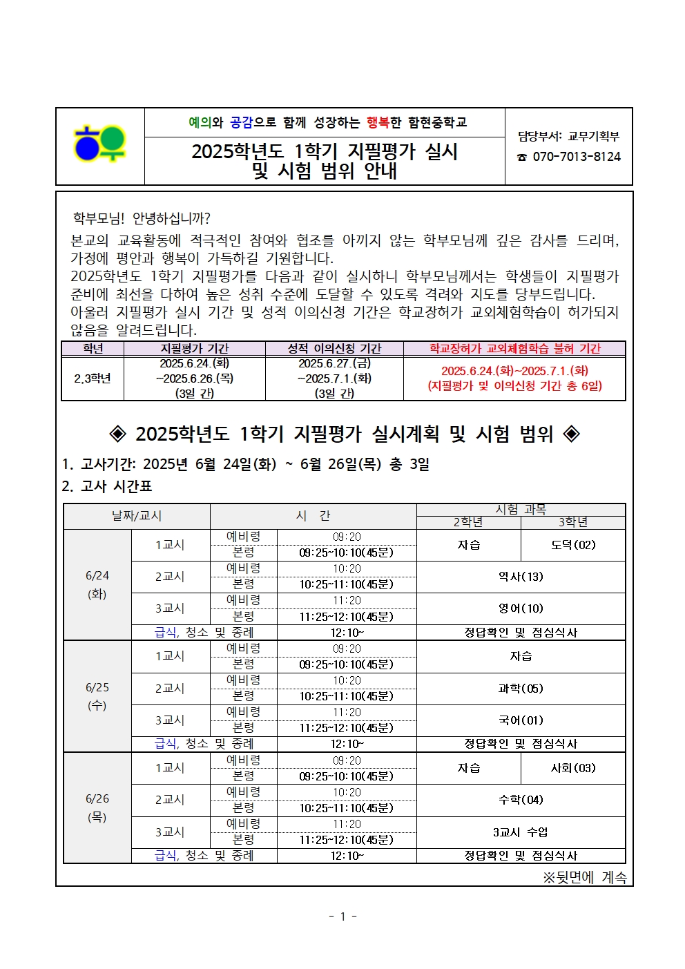 °¡Á¤Åë½Å¹®(0530)_2025Çг⵵ 1Çбâ ÁöÇÊÆò°¡ ½Ç½Ã ¹× ½ÃÇè ¹üÀ§ ¾È³».hwpx (83.85KB)