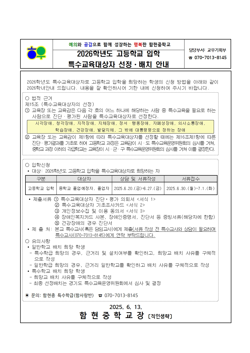 °¡Á¤Åë½Å¹®(0613)_2026Çг⵵ °íµîÇб³ ÀÔÇРƯ¼ö±³À°´ë»óÀÚ ¼±Á¤¹èÄ¡ ¾È³».hwpx (73.08KB)