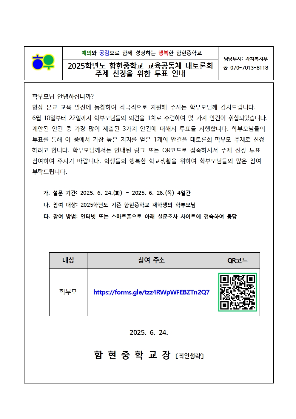 °¡Á¤Åë½Å¹®(0624)_2025Çг⵵ ±³À°°øµ¿Ã¼ ´ëÅä·Ðȸ ÁÖÁ¦ ¼±Á¤À» À§ÇÑ ÅõÇ¥ ¾È³».hwpx (98.10KB)