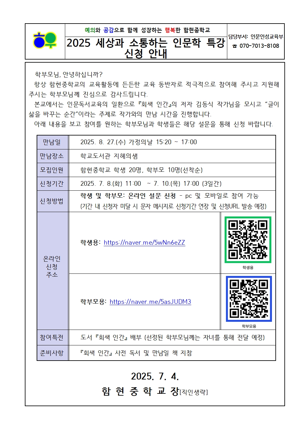 °¡Á¤Åë½Å¹®(0704) 2025 ¼¼»ó°ú ¼ÒÅëÇÏ´Â Àι®ÇРƯ°­ ½Åû ¾È³».hwpx (138.41KB)