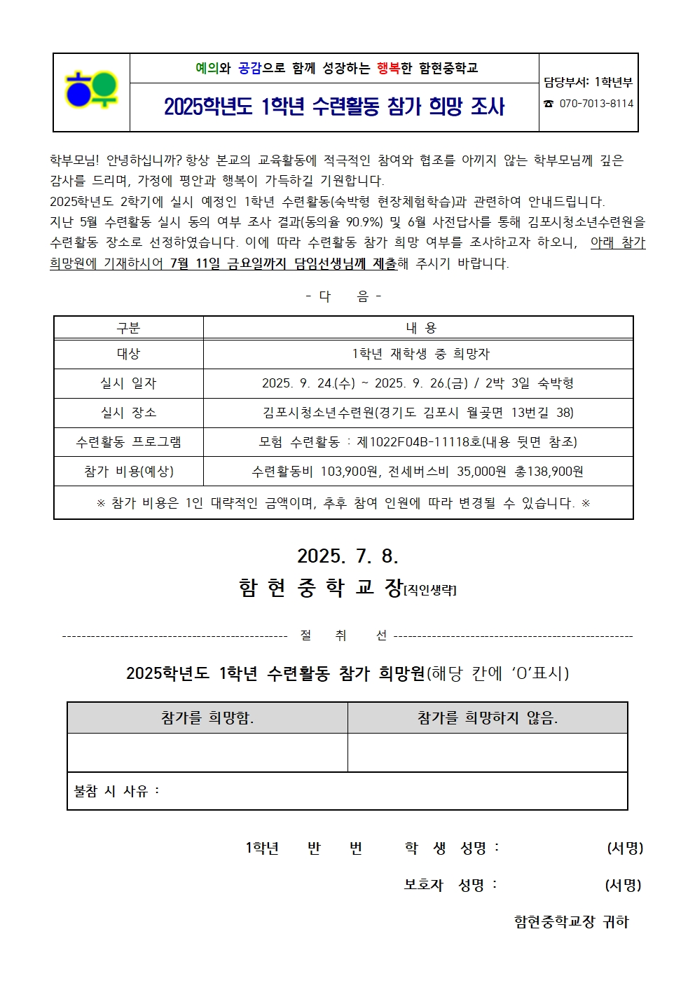 °¡Á¤Åë½Å¹®(0708)_2025Çг⵵ 1Çг⠼ö·ÃȰµ¿ Âü°¡ Èñ¸Á Á¶»ç.hwp (68.00KB)