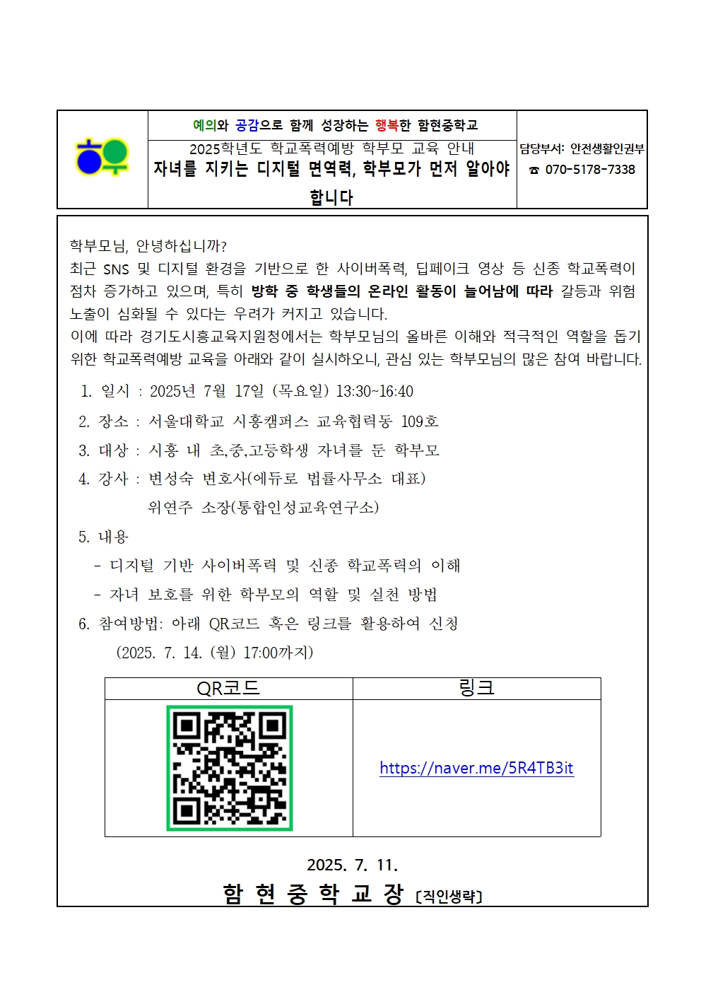 °¡Á¤Åë½Å¹®(0711)_2025Çг⵵ Çб³Æø·Â¿¹¹æ Çкθ𠱳À° ¾È³»001.jpg (494.26KB)