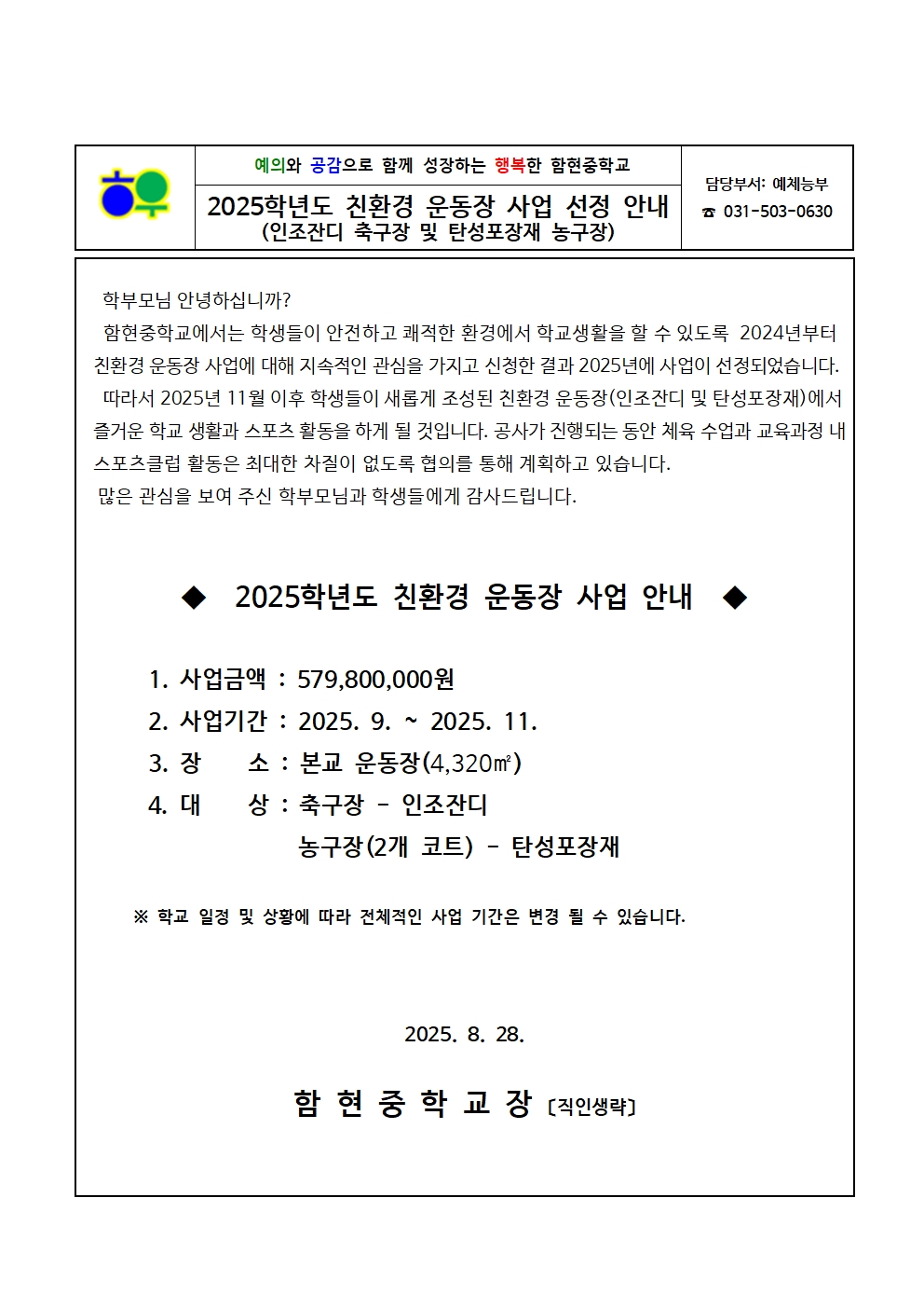 °¡Á¤Åë½Å¹®(0828)_2025Çг⵵ ģȯ°æ ¿îµ¿Àå »ç¾÷ ¼±Á¤ ¾È³».hwpx (62.64KB)