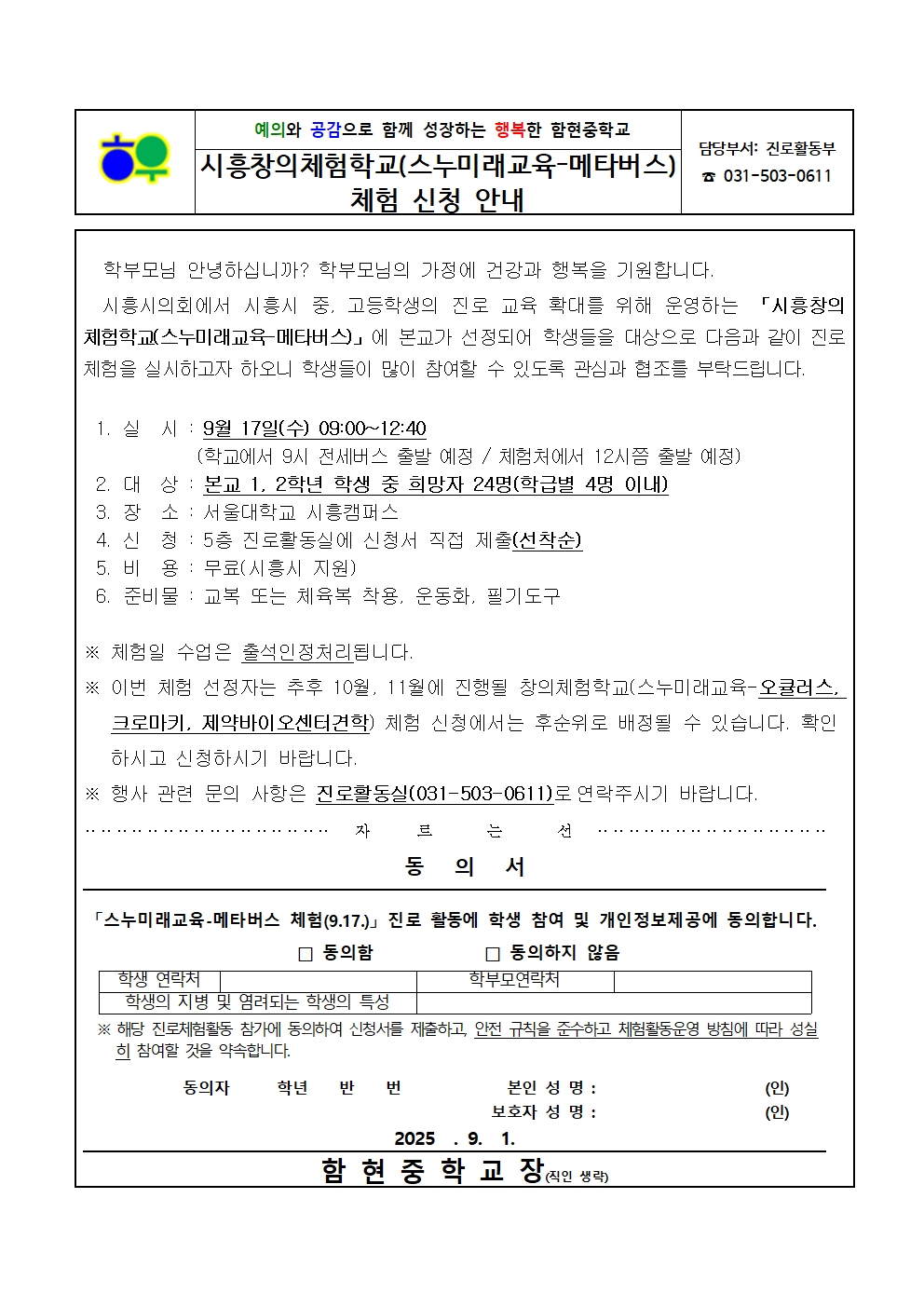 °¡Á¤Åë½Å¹®(0901)_½ÃÈïâÀÇüÇèÇб³ ½Åû ¾È³».hwpx (68.08KB)