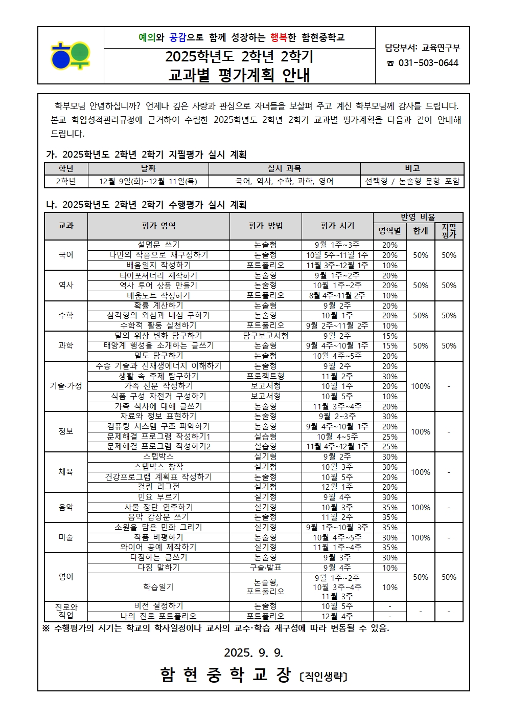 °¡Á¤Åë½Å¹®(0909)_2025Çг⵵ 2Çб⠱³°úº° Æò°¡°èȹ ¾È³».hwpx (1.25MB)