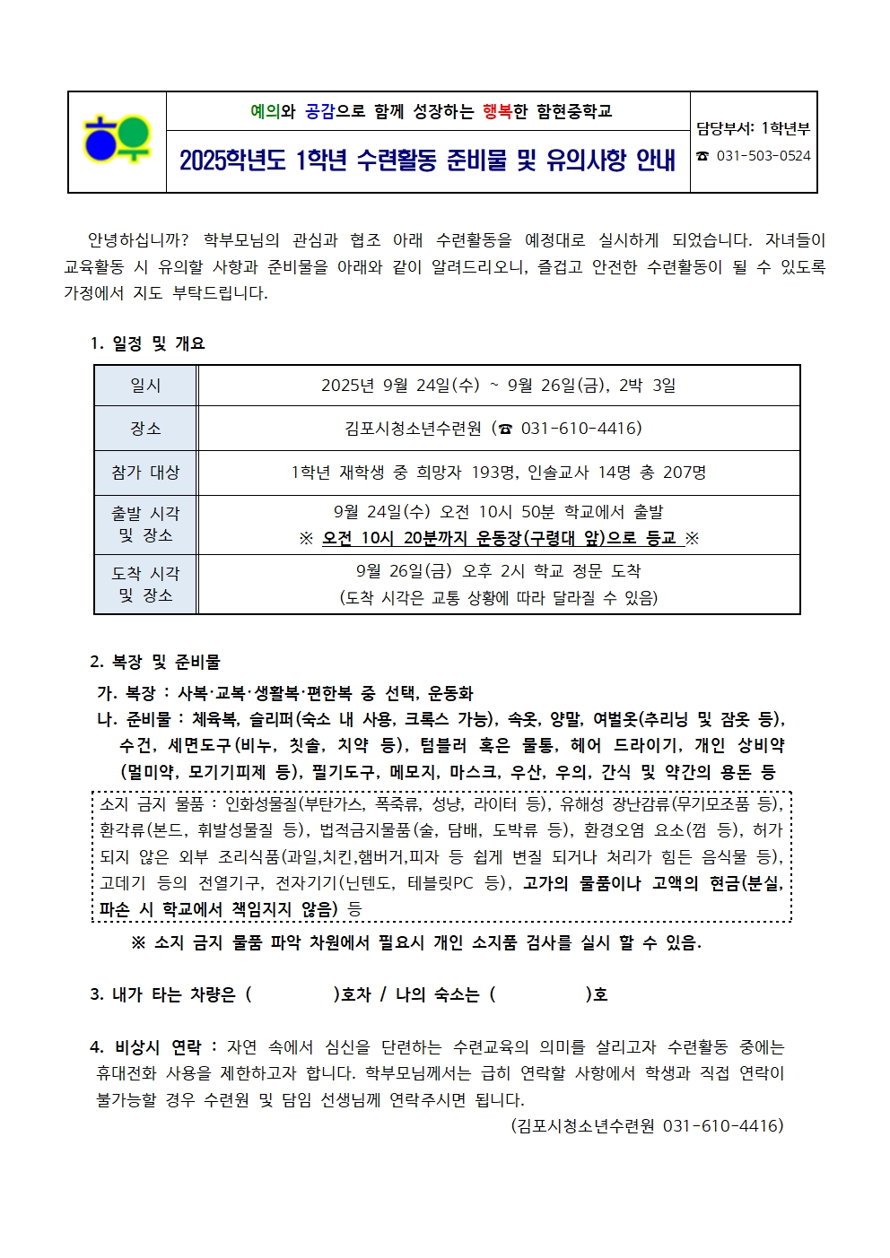 °¡Á¤Åë½Å¹®(0916)_2025Çг⵵ 1Çг⠼ö·ÃȰµ¿ Áغñ¹° ¹× À¯ÀÇ»çÇ× ¾È³».hwpx (80.37KB)