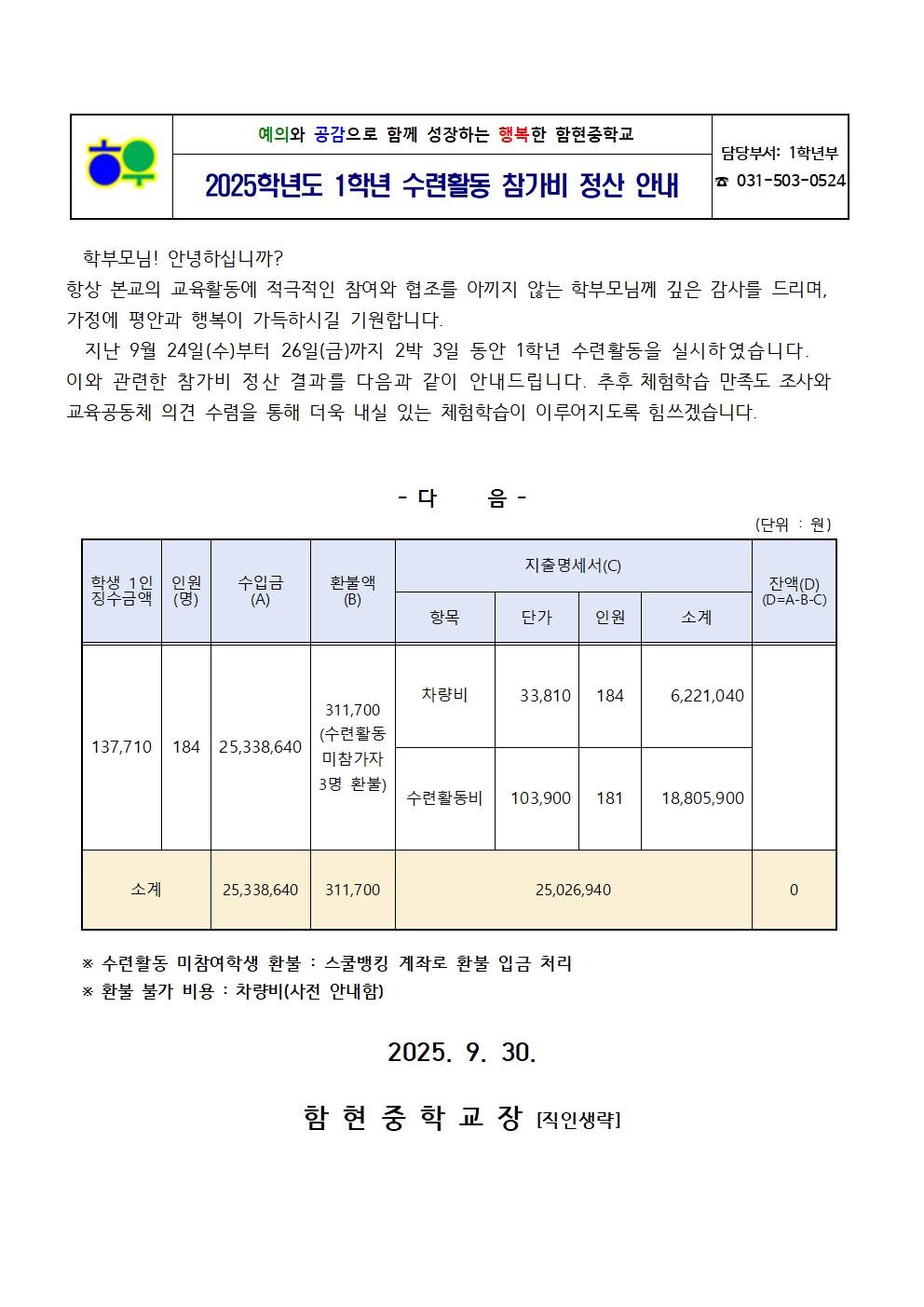 °¡Á¤Åë½Å¹®(0930)_2025Çг⵵ 1Çг⠼ö·ÃȰµ¿ Âü°¡ºñ Á¤»ê ¾È³».hwp (120.00KB)
