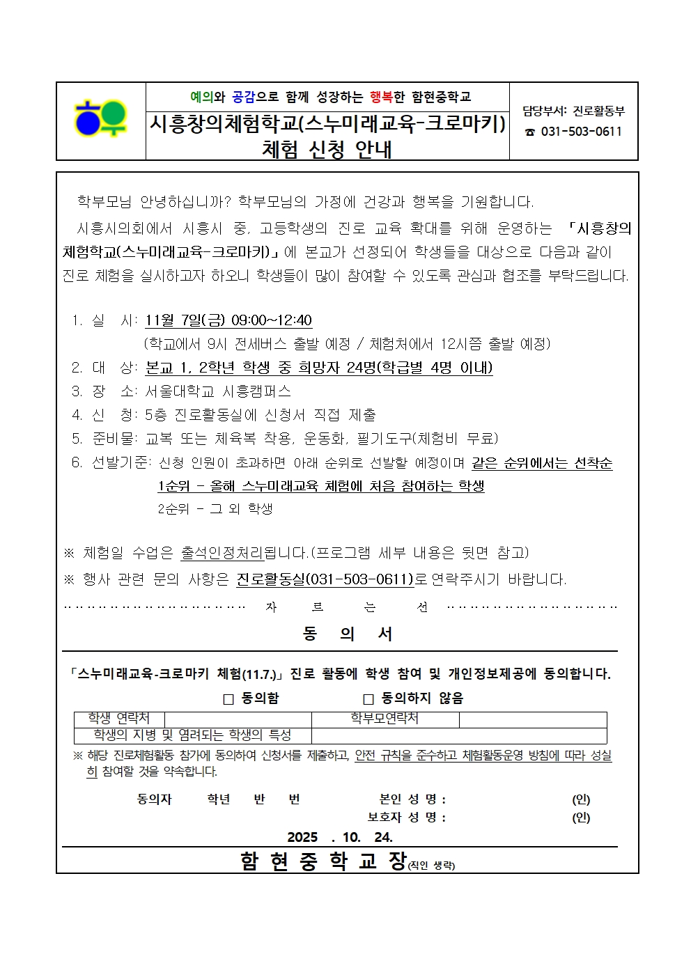 °¡Á¤Åë½Å¹®(1027)_½ÃÈïâÀÇüÇèÇб³(½º´©¹Ì·¡±³À°-Å©·Î¸¶Å°) üÇè ½Åû ¾È³».hwpx (70.29KB)