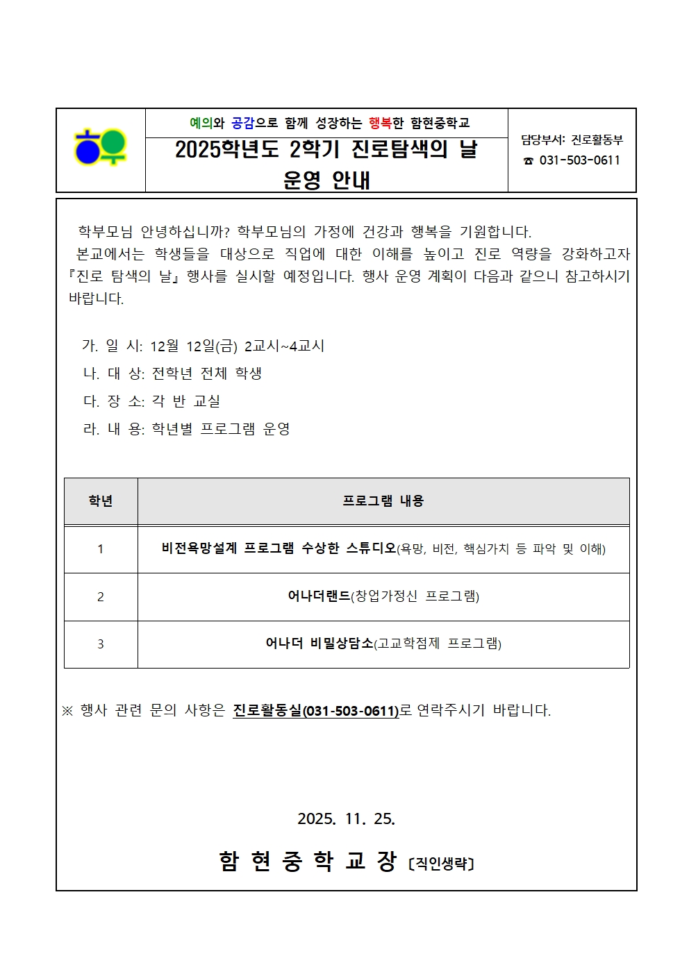 °¡Á¤Åë½Å¹®(1125)_2Çбâ Áø·Î Ž»öÀÇ ³¯ ¿î¿µ ¾È³».hwpx (56.27KB)